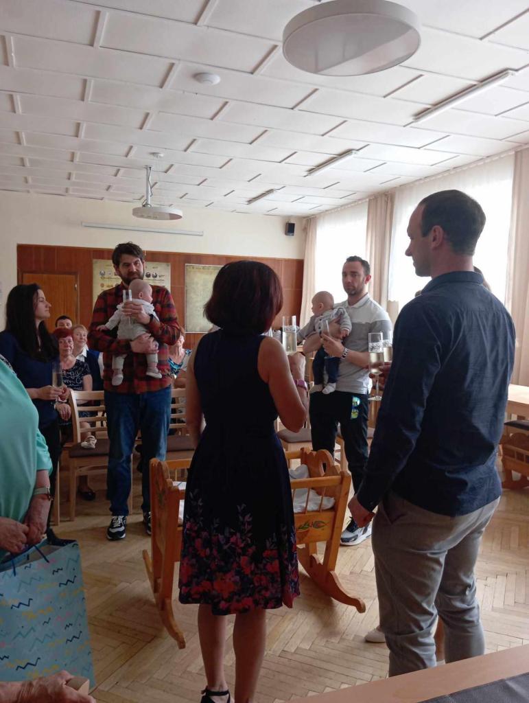 Letos v dubnu jsme přivítali mezi občany Stražiska tři kluky - Štěpána, Samuela a Tomáše. Krátké vystoupení na začátku měly děti ze školky, rodiče dostali dárek od spolku Stražiských žen, od obce finanční dar ve výši 2 000 Kč a po slavnostním proslovu starostky byl společný přípitek.