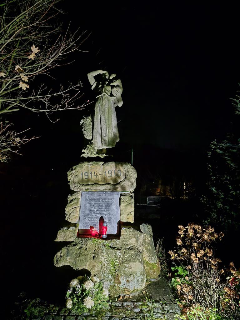 Z důvodu výstavby kanalizace v místní části Maleny byl začátek lampionového průvodu přesunut kvůli bezpečnosti účastníků k sokolovně. U pomníku padlým obětem války ve Stražisku promluvila paní starostka, která připomněla důležitost tohoto svátku.